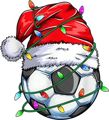 Christmas Soccer Ball Santa Hat DTF Transfer Holiday Lights