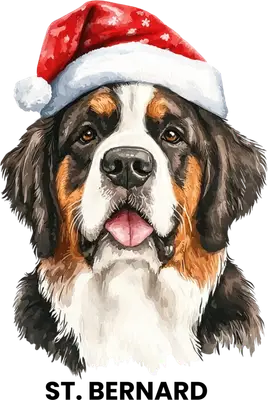 Christmas St. Bernard Dog DTF Transfer with Santa Hat