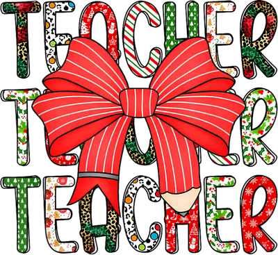Christmas Teacher DTF Transfer | Festive Bow & Pencil Apparel Design