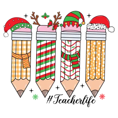 Christmas Teacher Life Pencils DTF Transfer | Holiday School Design