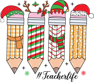 Christmas Teacher Pencils DTF Transfer | #Teacherlife Holiday Design