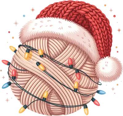 Christmas Yarn Ball DTF Transfer | Santa Hat & Lights Ready to Press