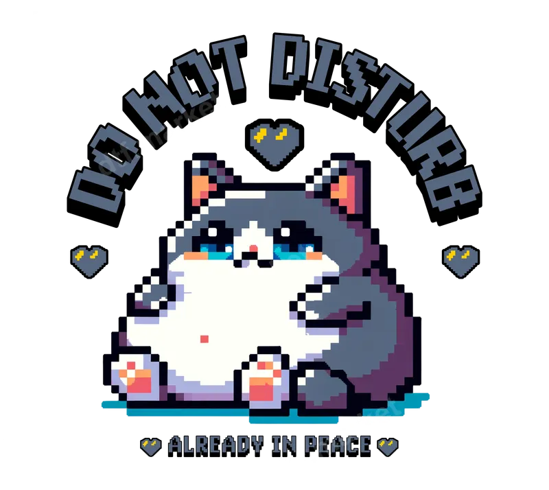 Chubby Pixel Cat DTF Transfer - Do Not Disturb Already In Peace