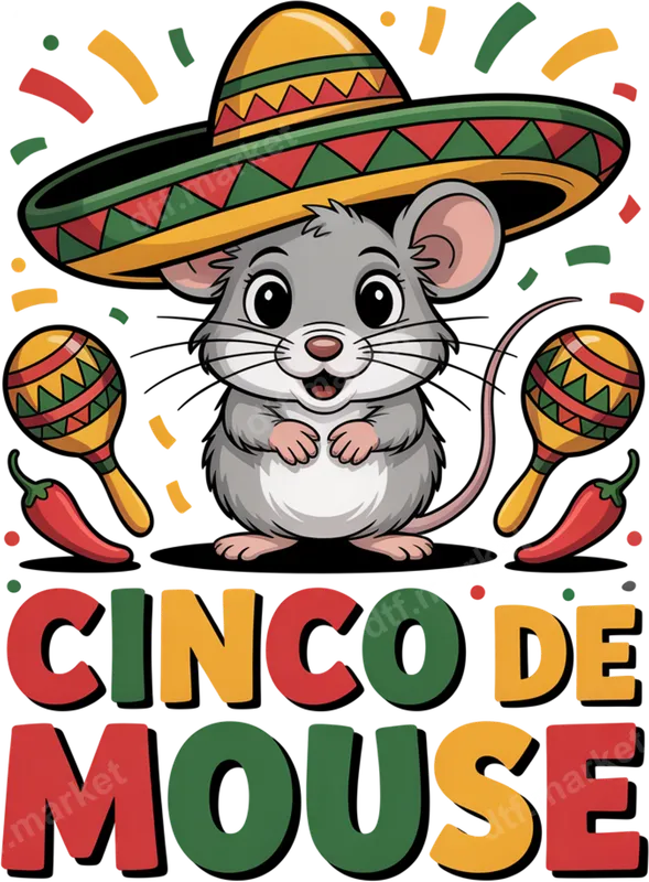 See allThis fun and festive DTF transfer features an adorable gray mouse wearing a traditional sombrero, flanked by colorful maracas and spicy red chili peppers. The playful phrase "CINCO DE MOUSE" is prominently displayed in vibrant red, green, and yellow block letters, capturing the spirit of Cinco de Mayo with a clever twist. This ready to press design brings a cheerful, celebratory vibe to any garment. Perfect for anyone looking to celebrate Cinco de Mayo in style, this heat transfer is ideal for parties, parades, and family gatherings. It makes a fantastic gift for friends, kids, or anyone who loves cute animal puns and Mexican-themed celebrations. Use it to create unique outfits for teachers, event staff, or simply to add a touch of humor to your everyday wardrobe during the festive season. Applying this premium DTF transfer is simple and efficient. It's designed to work flawlessly on a wide range of fabrics, including cotton, polyester, and various blends, making it incredibly versatile for all your apparel projects. For best results, use a heat press at 300-325°F for 15 seconds with medium pressure, then cold peel. While a heat press is recommended, a household iron can also be used with care. Enjoy professional-looking results with no weeding required. Our direct to film transfer ensures exceptional quality and durability. The colors are incredibly vibrant and sharp, guaranteed to stand out on any fabric. Engineered to be crack-resistant and soft to the touch, this apparel transfer provides a comfortable wear experience that lasts. Made with professional-grade DTF film and a strong adhesive, your design will endure wash after wash, maintaining its vividness and integrity.