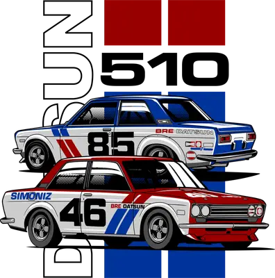 Classic Datsun 510 BRE Racing Car DTF Transfer | Retro JDM Auto Heat Press Design