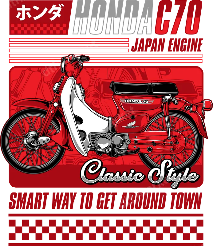 Classic Honda C70 Moped DTF Transfer - Japan Engine Retro Style