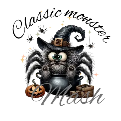 Classic Monster Mash Spider Witch DTF Transfer for Halloween