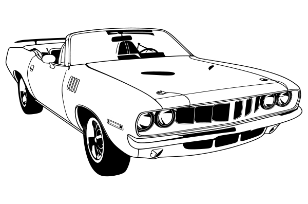 Classic Muscle Car Convertible DTF Transfer | Vintage Car Outline