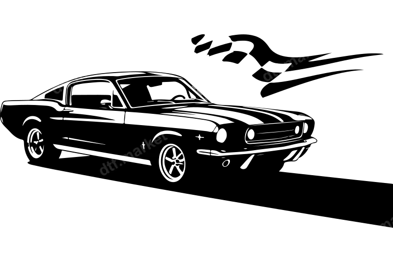 Classic Muscle Car Racing Flag DTF Transfer Ready To Press