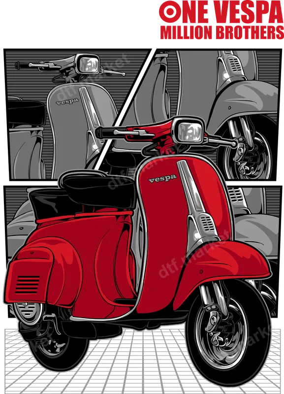 See allThis eye-catching DTF transfer celebrates the timeless appeal of the iconic Vespa scooter. Featuring a bold red vintage Vespa prominently, with subtle grey scooters in the background, the design embodies community and classic style. The powerful slogan "ONE VESPA MILLION BROTHERS" makes this a perfect statement piece. This high-quality, ready to press heat transfer brings a touch of retro charm to any garment. This vibrant design is ideal for Vespa riders, scooter enthusiasts, clubs, and anyone appreciating vintage Italian design and camaraderie. It makes an excellent gift for birthdays, Father's Day, or to surprise a fellow scooter lover. Perfect for adding personality to everyday wear or creating custom apparel for group rides, rallies, and automotive events, celebrating the bond shared by millions. Our premium direct to film transfer can be flawlessly applied to various fabric types, including cotton, polyester, and blends, ensuring versatility. Achieve professional results using a heat press at 300-325°F for 15 seconds with medium pressure. For those without a heat press, a household iron can also be used. Forget weeding; this apparel transfer is ready to be pressed onto your chosen item. Experience superior quality with our DTF transfers, known for their vibrant colors and exceptional durability. Each heat press design is crack-resistant and boasts a soft, flexible feel, ensuring comfort and longevity on your garments. We use professional-grade DTF film with strong adhesive, guaranteeing a crisp, long-lasting image that withstands countless washes. Transform your apparel with confidence and style.