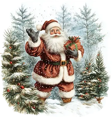 Classic Santa Claus Waving with Gift DTF Transfer | Holiday Ready to Press