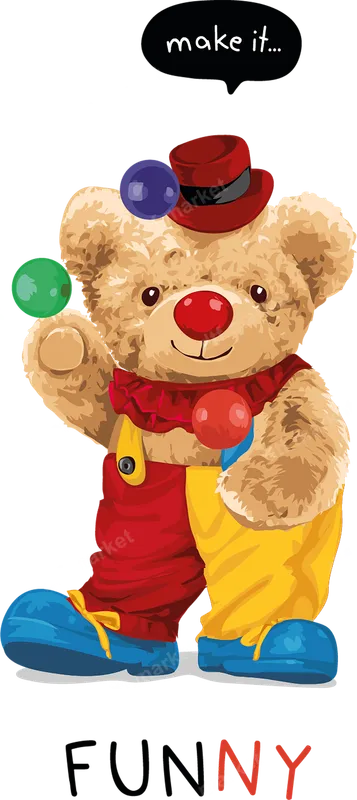 Clown Teddy Bear Juggling DTF Transfer | Make It Funny Iron On Design