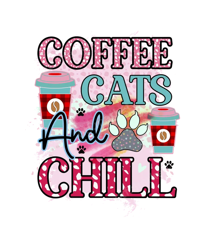 See allEmbrace ultimate relaxation with our adorable 'Coffee Cats And Chill' DTF transfer. This charming design features playful pink leopard print typography for 'Coffee' and 'Chill,' complemented by a soothing teal 'Cats' and elegant script 'And.' Adorned with cute coffee cups and a prominent cat paw print, this design captures the perfect cozy vibe. It's a high-quality, ready to press design that transforms any garment into a personal statement of comfort and feline affection. This versatile heat transfer is ideal for anyone who loves their morning brew, their furry friends, and some quiet downtime. It makes a fantastic gift for cat moms, coffee aficionados, students, or anyone needing a reminder to relax. Perfect for casual wear, weekend outings, or simply lounging at home, this design adds a touch of personality to any occasion, from birthdays to just-because moments, showing your love for animals and comfort. Applying this apparel transfer is simple and efficient. Our direct to film transfer works beautifully on cotton, polyester, and blends. For best results, use a heat press at 300-325°F for 15 seconds with medium pressure. Even if you don't have a heat press, this iron on transfer can be applied with a household iron (instructions included). Enjoy professional results without weeding or layering, making custom shirts easier than ever. Experience the exceptional quality of our heat press ready transfers. This vibrant t-shirt transfer is crafted to deliver crisp colors and superior durability. The print is crack-resistant, peel-resistant, and incredibly soft to the touch, ensuring your design looks fantastic wash after wash. We use premium DTF film with strong adhesive, providing a professional finish that will last, often mistaken for a more complex vinyl transfer for its quality.