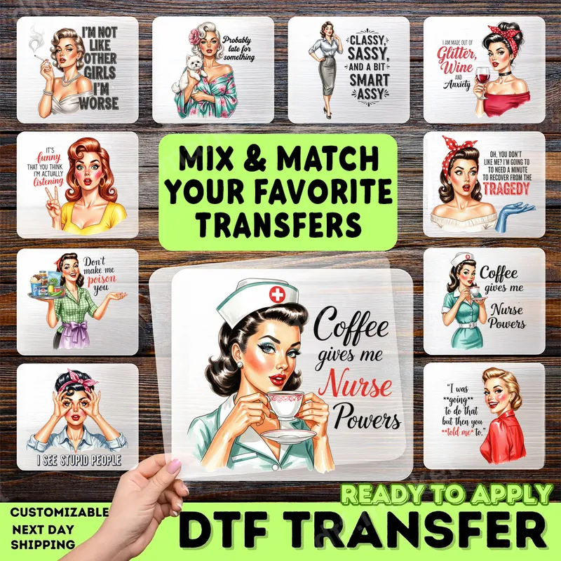 See allEmbrace your dedication and love for coffee with this vibrant "Coffee Gives Me Nurse Powers" DTF transfer. Featuring a classic pin-up style nurse holding a coffee cup, this retro design perfectly blends humor with professional pride. It's a ready to press direct to film transfer that's full of personality, making it an ideal choice for adding a unique touch to your apparel or accessories. This high-quality DTF transfer ensures a stunning, detailed image that stands out. This sassy design is perfect for nurses, medical professionals, students, and anyone in the healthcare field who understands the vital role coffee plays in their day. It makes a fantastic gift for Nurse Appreciation Week, medical school graduations, birthdays, or just because. Show off your nursing superpowers with this fun graphic, whether you're working a long shift or enjoying a well-deserved break. It’s also great for coffee enthusiasts with a passion for healthcare. Applying this heat press transfer is incredibly easy and requires no weeding. It works seamlessly on a wide range of fabrics, including cotton, polyester, and various blends. For best results, use a heat press at 300-325°F for 15 seconds with medium pressure, then peel cold. For those without a professional heat press, a household iron can also be used following careful instructions, ensuring a strong, durable bond for your new shirt design. Our professional DTF transfers are crafted using premium film and ink, ensuring exceptional vibrancy, crack-resistant flexibility, and a soft-to-touch finish that feels great on any garment. This durable t-shirt transfer is designed to withstand countless washes without fading or peeling, providing a long-lasting, professional look. Elevate your wardrobe or create personalized gifts with this top-tier apparel transfer.