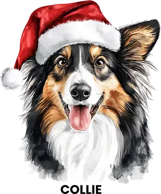 Collie Dog Santa Hat DTF Transfer - Christmas Holiday Ready to Press