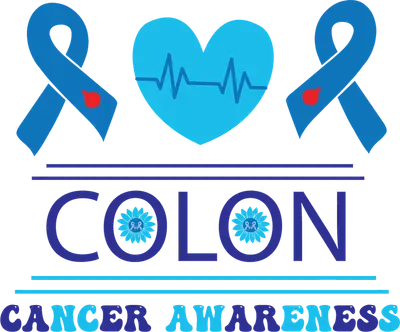 Colon Cancer Awareness DTF Transfer - Blue Ribbon & Heart