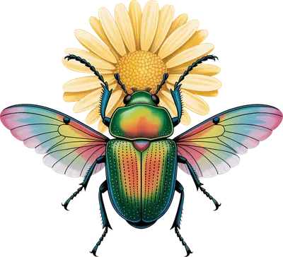 Colorful Beetle with Pastel Wings & Yellow Daisy DTF Transfer