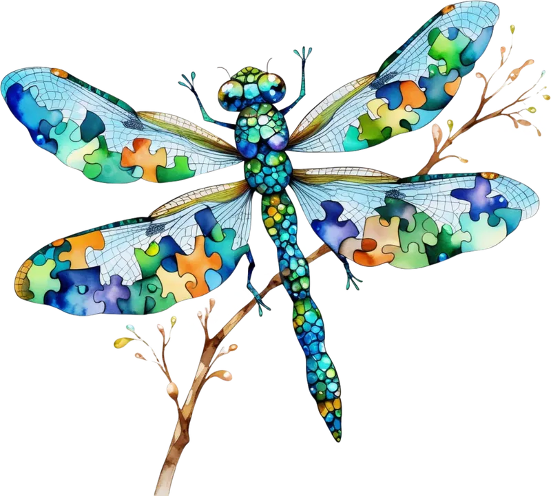 Colorful Dragonfly Puzzle Piece DTF Transfer - Autism Support