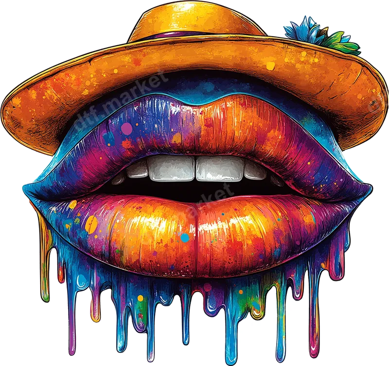 Colorful Dripping Lips Fedora Hat DTF Transfer