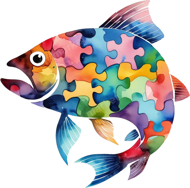 Colorful Puzzle Fish DTF Transfer | Watercolor Ocean Art
