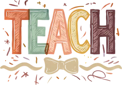 Colorful Teach with Bow Tie DTF Transfer | Ready to Press Teacher Design