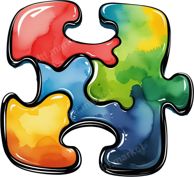 Colorful Watercolor Puzzle Piece DTF Transfer - Autism Awareness Ready to Press Design