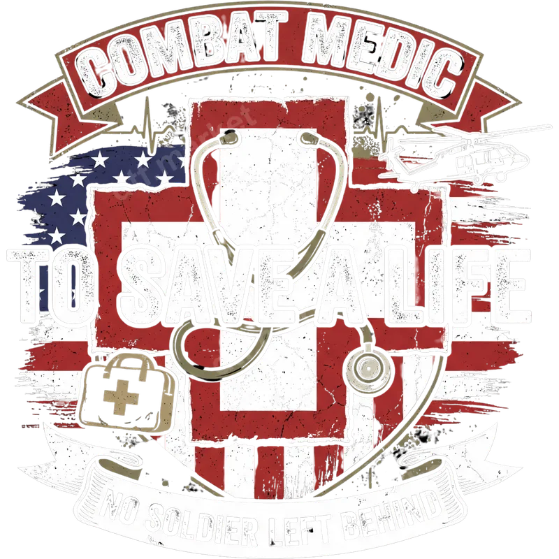 See allThis DTF transfer features a powerful design honoring Combat Medics, combining patriotic American flag elements with a medical cross, stethoscope, and rescue helicopter. The distressed, grunge aesthetic gives it a rugged, impactful look. This ready to press design proudly displays the slogans "Combat Medic," "To Save A Life," and "No Soldier Left Behind," encapsulating the selfless dedication of military medical personnel. This versatile design is ideal for active duty military, veterans, reservists, and their families. It makes a thoughtful gift for holidays like Veterans Day, Memorial Day, or any occasion to show appreciation for their service and sacrifice. Perfect for medical professionals with military ties, supporters of the armed forces, or anyone wanting to express their gratitude for those who put their lives on the line to save others. Applying this custom transfer is effortless. Our high-quality DTF transfers work on cotton, polyester, and blends. For best results, use a heat press at 300-325°F for 15 seconds with medium pressure, then cold peel. A household iron can also be used. Unlike vinyl transfers, there's no weeding or masking required, making your pressing process quick and easy. Experience superior quality with our direct to film transfers. Designed to be vibrant, durable, and crack-resistant, this apparel transfer ensures your garment looks professional wash after wash. The print has a soft hand feel and exceptional stretch, moving with the fabric without peeling or fading. We use professional-grade DTF film and inks to deliver a premium heat press design.