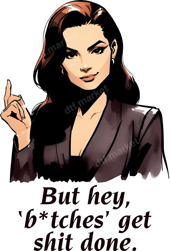 See allShow the world you mean business with this striking DTF transfer featuring a confident, dark-haired woman in a blazer, finger pointed, accompanied by the bold and unapologetic quote: "But hey, 'b*tches' get shit done." This vibrant design captures a powerful, sassy, and humorous vibe, making it a perfect ready to press statement piece for anyone who embraces their strength and efficiency. This direct to film transfer is ideal for strong women, entrepreneurs, hustlers, or anyone who appreciates a touch of fierce humor. It makes an excellent gift for birthdays, Galentine's Day, or just to celebrate the hardworking women in your life. Perfect for empowerment events, protest gear, or simply as an everyday reminder that getting things done is what truly matters. Our professional heat transfer is incredibly versatile, working flawlessly on various fabric types including cotton, polyester, and blends. Easily apply this design using a heat press at 300-325°F for 15 seconds with medium pressure. For home crafters, a household iron can also be used, ensuring a smooth application without the hassle of weeding. This iron on decal offers a quick and professional finish every time. Experience superior quality with this ready to press transfer. Crafted using premium DTF film and strong adhesive, the colors are incredibly vibrant, crack-resistant, and the print remains soft to the touch, ensuring maximum comfort and long-lasting durability. Elevate your apparel with this high-quality shirt design, providing a flawless and professional look that stands the test of time.