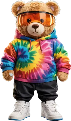 Cool Bear DTF Transfer | Tie-Dye Hoodie & Ski Goggles Streetwear Design