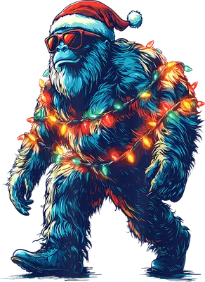 Cool Bigfoot Santa Hat & Christmas Lights DTF Transfer