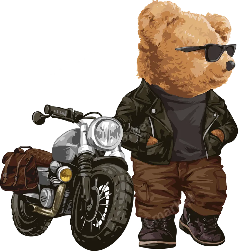 See allThis eye-catching DTF transfer features a super cool teddy bear rocking a classic biker jacket, stylish sunglasses, and rugged boots, leaning confidently against a vintage-style motorcycle. Complete with a detailed saddlebag, this design perfectly captures an edgy, yet adorable, rebel spirit. It's a high-quality, ready to press design that brings attitude to any garment or accessory. Perfect for motorcycle enthusiasts, teddy bear lovers, or anyone who appreciates a unique blend of cute and tough. This versatile heat transfer makes an excellent gift for birthdays, Father's Day, or just because. Use it to personalize gifts for biker friends, customize club apparel, or create standout fashion pieces for streetwear fans and trendsetters. Our direct to film transfers are incredibly easy to apply to a wide range of fabrics, including cotton, polyester, and various blends. For best results, use a heat press at 300-325°F for 15 seconds with medium pressure, then cold peel. While a heat press is recommended for professional results, you can also use a household iron. Best of all, there’s absolutely no weeding required, making customization a breeze. Experience superior quality with our durable DTF transfers. Each heat press design boasts vibrant colors, excellent wash durability, and is crack-resistant, ensuring your customized items look great for longer. The professional-grade DTF film provides a soft, flexible feel that seamlessly integrates with the fabric, and features a strong adhesive for a lasting bond.