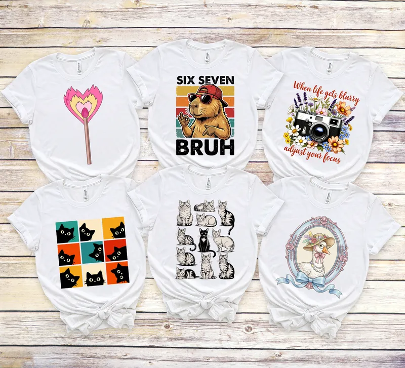 See allThis vibrant DTF transfer features a cool capybara sporting sunglasses and a red baseball cap, striking a casual pose with a hand gesture. A retro sunset design adds a nostalgic touch, while the bold "SIX SEVEN BRUH" text makes a clear, humorous statement. This design captures a trending meme vibe, making it a perfect ready to press statement piece for anyone adding internet culture to their wardrobe. This unique heat transfer is ideal for meme enthusiasts, Gen Z fashion trendsetters, and anyone with a playful sense of humor. It makes an excellent gift for birthdays, holidays, or just because, for friends who appreciate viral content and distinctive apparel. Perfect for casual outings, school, or simply lounging, this design is sure to spark conversations. It’s also a fantastic iron on decal for creating personalized gifts. Applying this direct to film transfer is straightforward and hassle-free, suitable for a wide range of fabrics including cotton, polyester, and their blends. For best results, use a heat press at 300-325°F for 15 seconds with medium pressure, then peel cold. For those without a heat press, a household iron can also achieve great results. No weeding is required, saving you time and effort with these heat press ready designs. Crafted with professional-grade DTF film and high-quality inks, this apparel transfer boasts vibrant colors and sharp details that truly pop. The print is incredibly durable, offering excellent crack resistance and a soft, flexible feel on your garment, ensuring long-lasting wear without fading. Our advanced adhesive ensures a strong bond to your fabric, creating a professional finish that rivals screen printing.