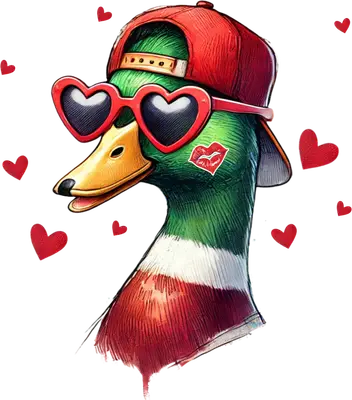 See allThis vibrant DTF transfer captures a playful mallard duck sporting a cool red backwards baseball cap, trendy heart-shaped sunglasses, and a fun kiss mark on its neck. Surrounded by floating red hearts, this design exudes a charming and quirky vibe, perfect for those who love unique animal graphics with a touch of romance. It's a colorful, eye-catching, and ready to press design that adds character to any garment or accessory, making it an instant conversation starter. The intricate details and vivid colors are designed to stand out. This design is perfect for Valentine's Day gifts, anniversary surprises, or simply expressing your fun-loving personality year-round. It makes a unique iron on transfer for a loved one, a quirky friend, or even yourself! This heat transfer design is also fantastic for small business owners looking to offer distinctive apparel for their boutiques or online shops, especially during holiday seasons. Imagine custom shirts for a date night, a casual outing, or just lounging at home with a touch of humor and style. Applying this versatile heat press transfer is a breeze. It works seamlessly on a wide range of fabrics including cotton, polyester, cotton-poly blends, and even nylon. For best results, use a heat press at 300-325°F for 15 seconds with medium pressure, or apply with a household iron. There's no tedious weeding required—just peel and press! Ideal for custom t-shirts, hoodies, sweatshirts, tote bags, pillow covers, baby onesies, aprons, and denim jackets. For lasting durability, wash garments inside out and tumble dry low. Each ready to press transfer features vibrant, full-color printing with exceptional fine detail, ensuring your design looks professional and striking. Our transfers are crack-resistant, offering a soft-to-the-touch feel with none of the heavy, stiff texture often associated with vinyl. Every direct to film transfer is printed on premium DTF film with a strong adhesive backing, guaranteeing professional-grade results and long-lasting wear for all your apparel projects.