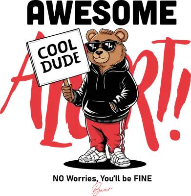 Unleash your inner cool with this "Awesome Alert!" bear DTF transfer, a standout design featuring a confident cartoon bear sporting stylish sunglasses, a black hoodie, and red track pants. Holding a sign that proudly declares "COOL DUDE," this design exudes a laid-back, positive vibe, complemented by the empowering message "NO Worries, You'll be FINE." This vibrant DTF transfer is meticulously crafted to be ready to press, allowing you to instantly elevate your apparel with a touch of urban flair. This eye-catching iron on transfer is perfect for trendsetting youth, teenagers, and young adults who love streetwear fashion and graphic tees. It makes an excellent gift for friends, siblings, or anyone who appreciates a cool, motivational statement. Small custom apparel businesses, Etsy shop owners, and DIY crafters looking for unique, high-demand designs will find this versatile heat transfer design a fantastic addition to their inventory, perfect for creating popular, personalized items. Applying this professional heat press transfer is a breeze. It adheres beautifully to various fabrics including cotton, polyester, cotton-poly blends, and even nylon, offering incredible versatility. Simply use a heat press at 300-325°F for 15 seconds with medium pressure, or apply with a household iron. There's no tedious weeding required—just peel and press! It’s perfect for custom t-shirts, hoodies, sweatshirts, tote bags, pillow covers, and denim jackets. For lasting durability, wash garments inside out and tumble dry on low heat. Each ready to press transfer boasts vibrant, full-color printing with exceptional fine detail, ensuring your design truly pops. The material is crack-resistant and soft to the touch, providing a comfortable wear without the heavy, stiff feel of traditional vinyl. Every direct to film transfer is printed on premium DTF film with a strong adhesive backing, guaranteeing professional-grade results that are both durable and visually stunning for all your creative projects.