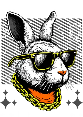 Cool Hip Hop Rabbit with Sunglasses & Gold Chain DTF Transfer