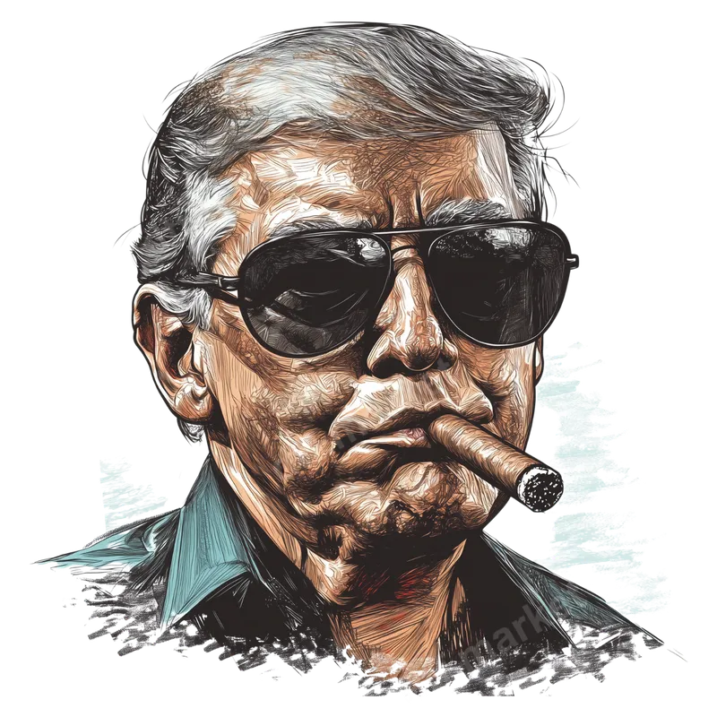 See allThis distinctive DTF transfer features a stylized portrait of a powerful figure, exuding an aura of cool with aviator sunglasses and a lit cigar. The artwork boasts a vibrant, edgy, sketch-like quality, making a bold statement. It's a unique design, ready to press onto your favorite garments, capturing a confident and slightly rebellious spirit. This high-quality heat press ready design is perfect for those who appreciate political satire or simply a strong, iconic image. This striking iron on transfer is ideal for political enthusiasts, meme lovers, and anyone looking to inject some bold personality into their wardrobe. It's fantastic for casual wear, political rallies, themed parties, or as a conversation-starting gift for friends and family who appreciate edgy pop culture or a good laugh. Perfect for expressing a unique point of view or simply showing off a "boss" attitude. Our premium t-shirt transfer is designed for easy application on a wide range of fabrics, including cotton, polyester, and blends. For best results, use a heat press at 280-300°F for 6-10 seconds with medium pressure, followed by an instant cold peel. While a heat press is recommended for professional results, this versatile apparel transfer can also be applied with a household iron (follow specific instructions provided with your order). Enjoy the convenience of no weeding or masking required. Experience superior quality with our professional-grade DTF film. This heat transfer delivers incredibly vibrant colors and sharp details that truly stand out. The durable design is crack-resistant, wash-fast, and provides a remarkably soft hand feel, ensuring your custom creation looks great and lasts. Our strong adhesive backing ensures a secure bond to your garment, providing a long-lasting, high-quality finish for all your customization projects.