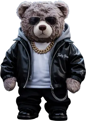 Cool Streetwear Teddy Bear DTF Transfer | Gold Chain & Bomber Jacket