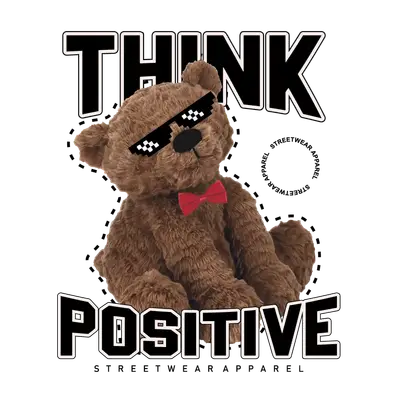 Cool Think Positive Teddy Bear Pixel Glasses DTF Transfer