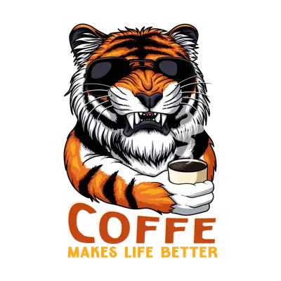 Cool Tiger Coffee Lover DTF Transfer - Coffee Makes Life Better