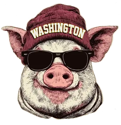 Cool Washington Pig DTF Transfer with Beanie & Sunglasses