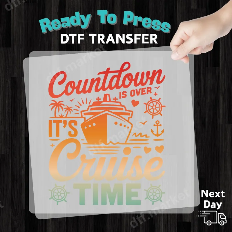Countdown Over It's Cruise Time DTF Transfer Ready To Press Design