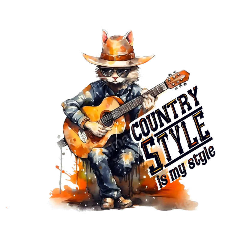 Country Cat Guitarist DTF Transfer - 'Country Style Is My Style' Ready to Press Design
