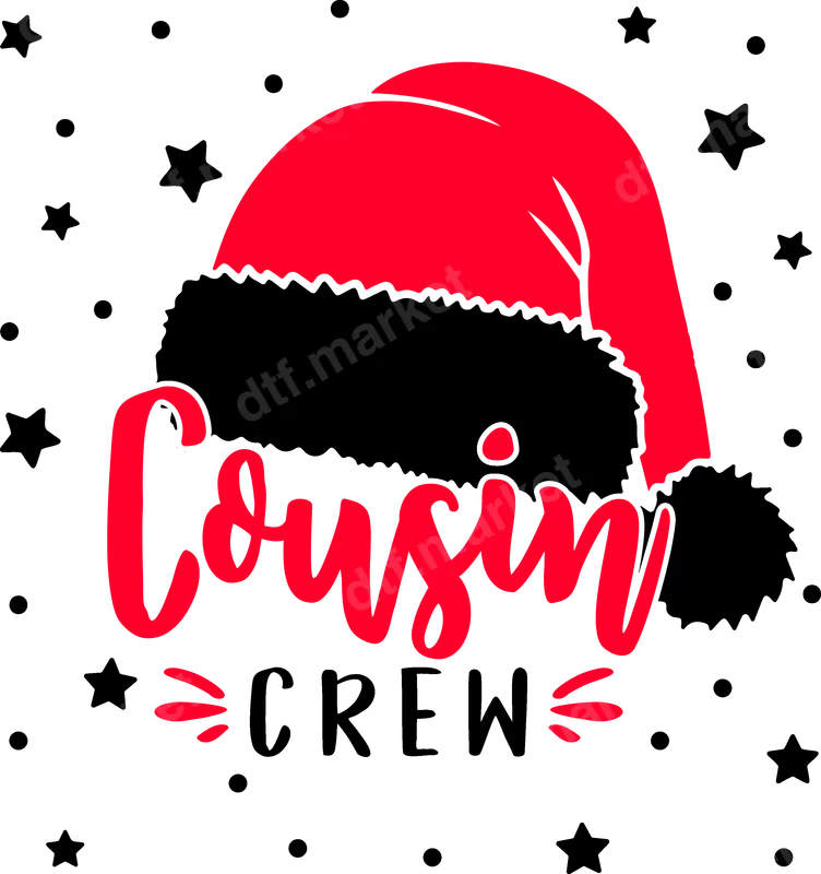 Cousin Crew Santa Hat Christmas DTF Transfer | Holiday Family Matching Design