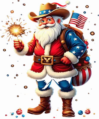 Cowboy Patriotic Santa DTF Transfer with Sparkler & Flag