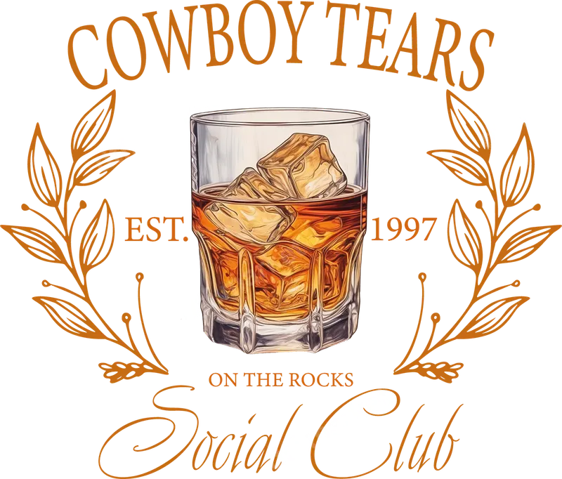 Cowboy Tears Social Club Whiskey On The Rocks DTF Transfer Est. 1997