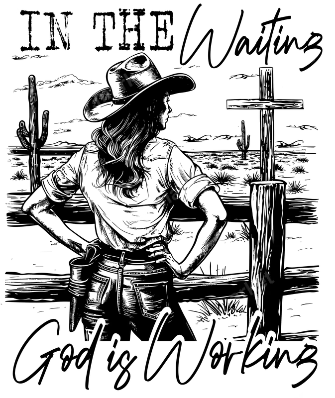 Cowgirl Faith DTF Transfer: In The Waiting God Is Working