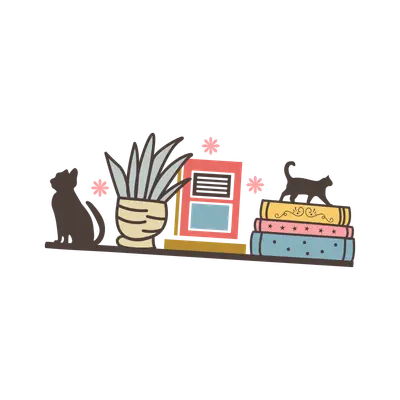 Cozy Bookshelf Cats & Books DTF Transfer | Reader & Cat Lover Design