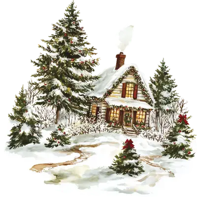 Cozy Christmas Cabin DTF Transfer | Snowy Winter Holiday House
