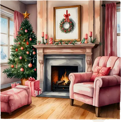 Cozy Christmas Living Room DTF Transfer | Festive Fireplace Scene