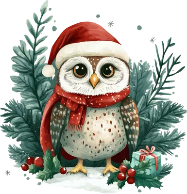 Cozy Christmas Owl DTF Transfer with Santa Hat & Scarf Festive Design